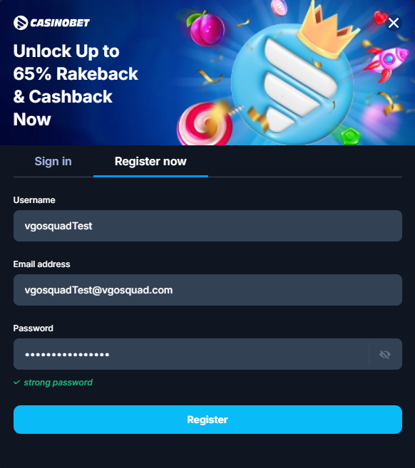 Click our affiliate link to join CasinoBet and unlock access to all our exclusive bonuses and rewards.